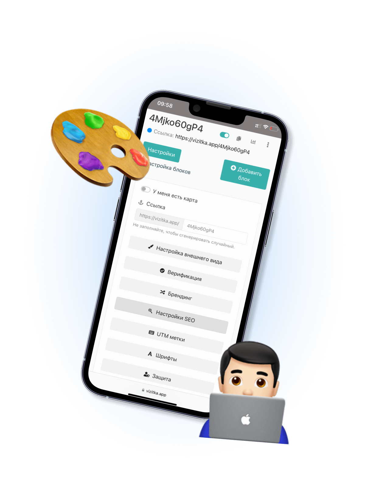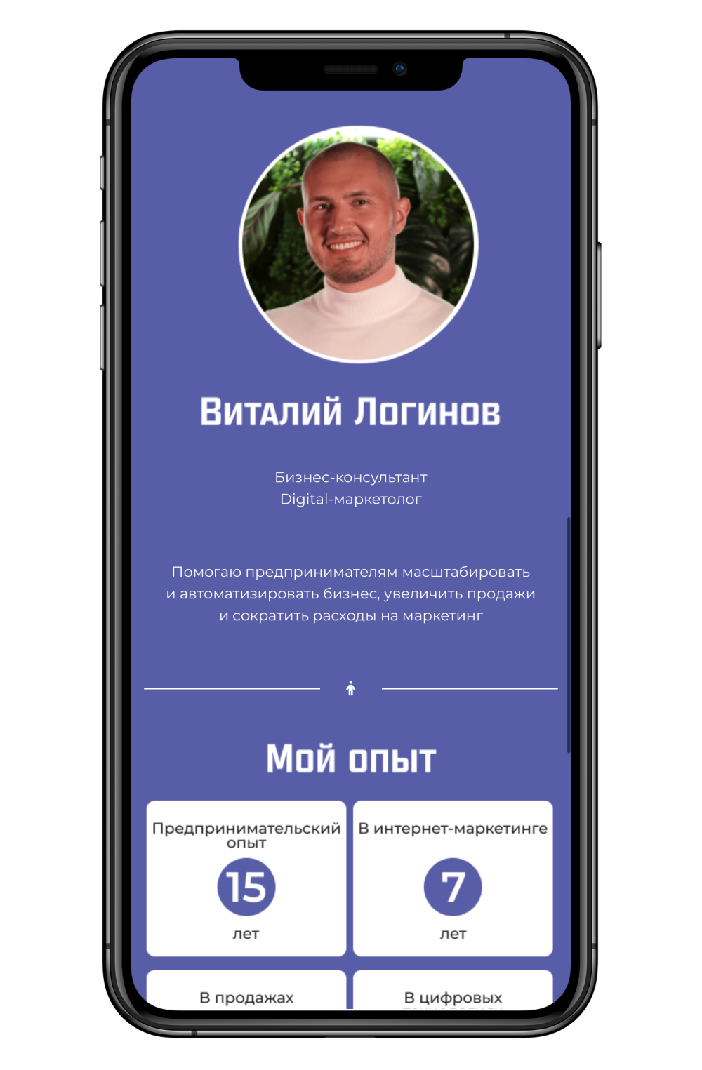 У меня два салона красоты и один Instagram для обоих, была проблема с размещением актуальных цен, а так же перечнем услуг и записью на процедуры. С помощью Умной Визитки мы решили не только эти проблемы, но а так же собрали на одном сайте всю важную информацию для клиентов: рассказ о моём профессиональном опыте, портфолио работ, отзывы клиентов, актуальные цены, адреса моих салонов и другое. Кнопки сайта ведут на WhatsApp с администратором, а он знает с какой страницы пишет клиент. Так же мы запустили таргетированную рекламу на Умную Визитку и получили поток новых клиентов.